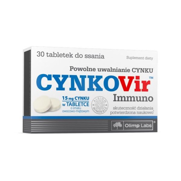 CINKOVir Immuno de Olimp® Labs es el suplemento nutricional en tabletas con sabor a fruta y menta que te proporciona 15 mg de zinc en forma altamente absorbible (como aminoquelato de zinc Albion™ y gluconato de zinc) por dosis de 1 tableta.