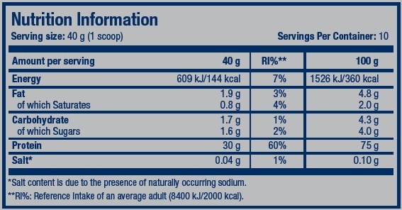 - Contiene proteínas de alta calidad procedentes de la caseína y del suero.