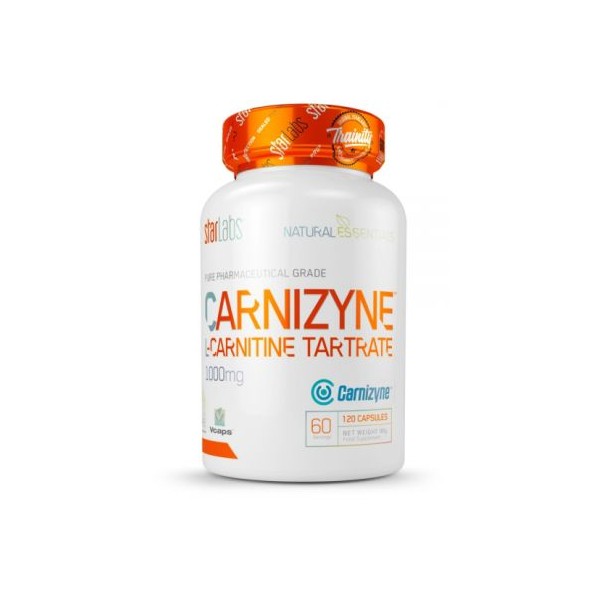 Carnizyne™ de StarLabs es un suplemento en cápsulas que te proporciona 1.000 mg de L-carnitina tartratro de la más alta calidad farmacéutica por dosis de 2 cápsulas.