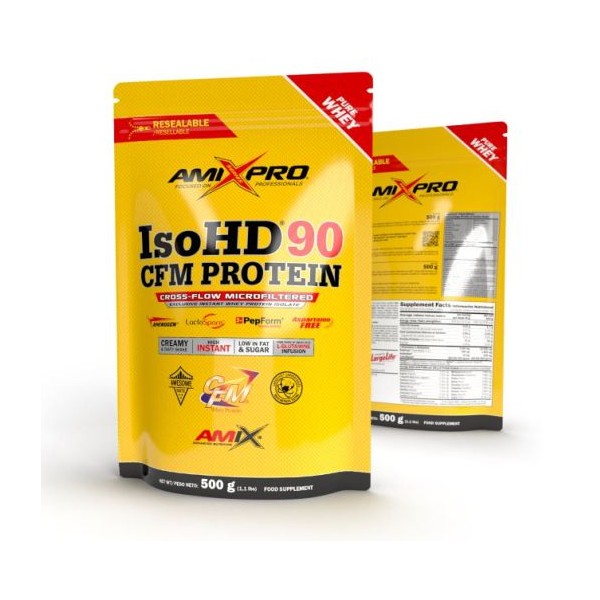 IsoHD® 90 CFM Protein de Amix™ Advanced Nutrition es una proteína con un 90% de pureza que contiene CFM® Whey Protein de Glanbia Nutritionals, considerada por muchos como el mejor aislado de suero del mundo, debido a su gran pureza, excelente aminograma y máxima biodisponibilidad, con uno de los valores biológicos más altos que existen.