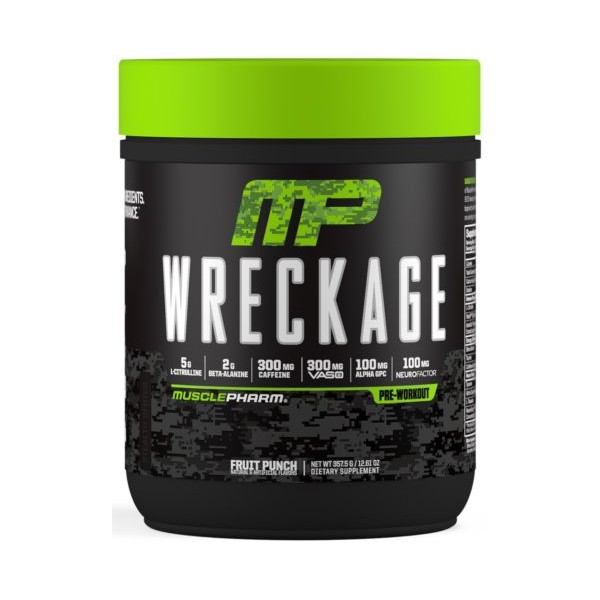 Directions For Wreckage Pre Workout Powder: For advanced users, mix one serving (1 scoop) of MusclePharm Wreckage™ in 8-12 fl. oz. of cold water and consume 20-30 minutes before training. For first time or inexperienced users, begin with a half serving (½ scoop) to assess tolerance. Do not exceed one serving per day. Use as part of a healthy diet and exercise program.