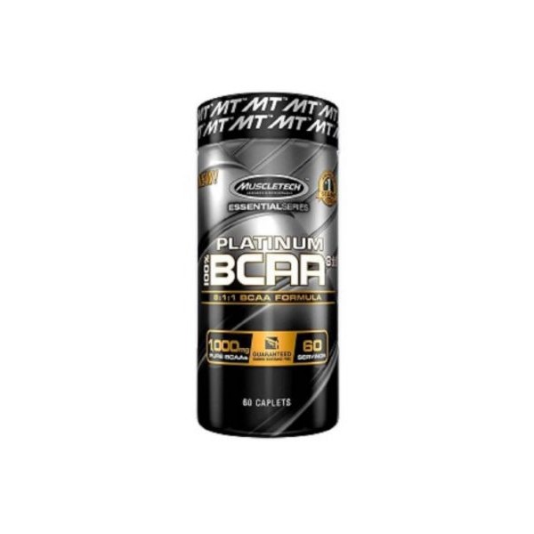 Platinum 100% BCAA 8:1:1 de la marca Nº1 en todo el mundo Muscletech® es un suplemento en tabletas que contiene una potente fórmula de aminoácidos de cadena ramificada con una proporción de BCAAs de 8:1:1 (leucina, isoleucina, valina).