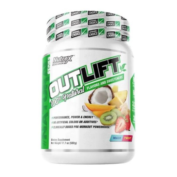 OutLift™ 100% Natural de Nutrex Research es la versión con saborizantes y edulcorantes completamente naturales del poderoso y completo pre-entreno todo en uno clínicamente dosificado diseñado específicamente para mejorar la fuerza y el tamaño muscular.