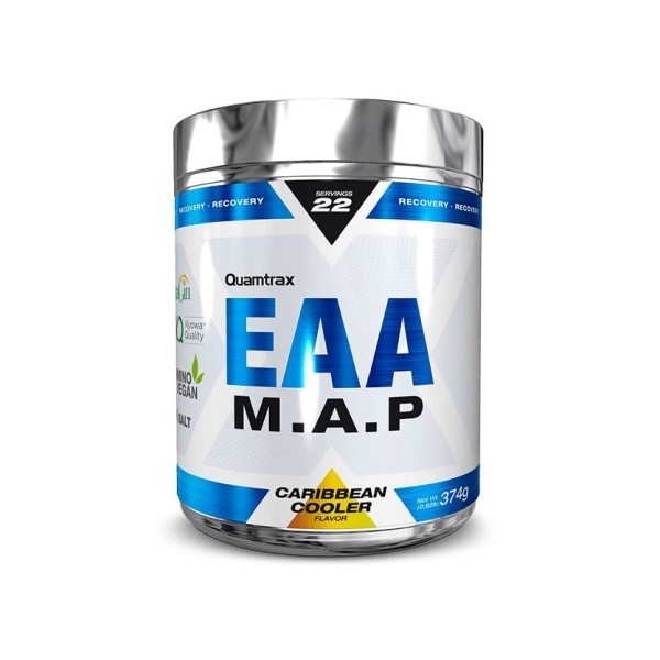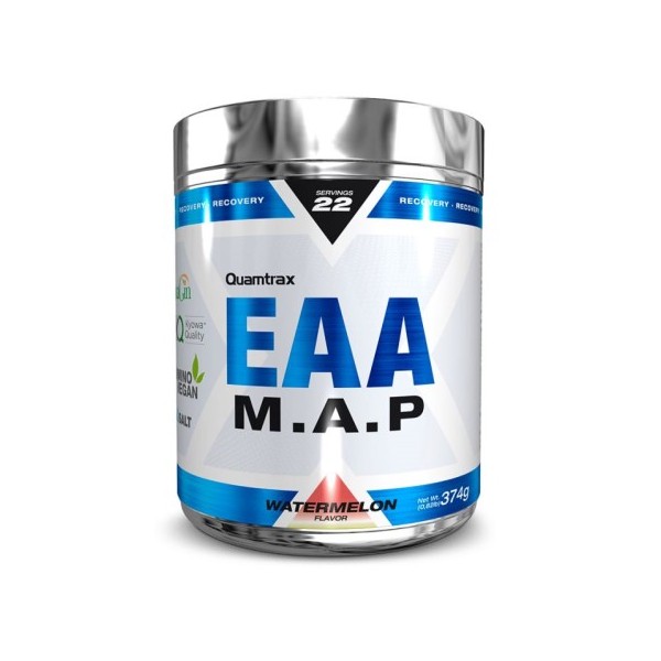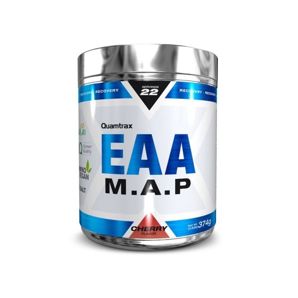 EAA M.A.P de Quamtrax Nutrition es un suplemento en polvo que contiene una fórmula única altamente purificada con una combinación equilibrada de 9,8 gramos de aminoácidos esenciales de origen vegetal, 4,86 gramos de glutamina, AstraGin® e HydroSalt Complex®, un complejo especial de electrolitos.
