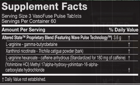 Altered state, NO es el típico producto de óxido nítrico, combina los más poderosos ingredientes vasodilatarores con la acción termogénica. Altered State actúa inmediatamente invadiendo tus vasos sanguíneos de componentes vasodilatadores de acción inmediata para unos efectos de creación de músculo ¡que sentirás durante varias horas!.