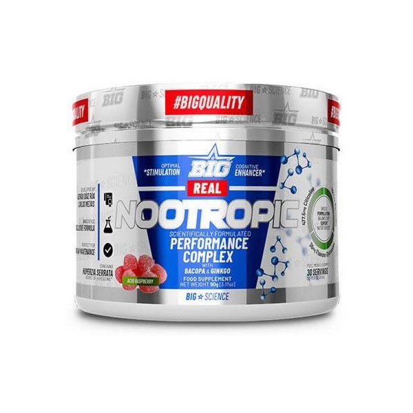 Real Nootropic de la gama BIGscience es una nueva formulación multi-ingrediente, desarrollada especialmente para mejorar la concentración y la formación de memoria, aumentar los niveles de atención y reducir la percepción de la fatiga o cansancio durante tus sesiones de estudio o aquella actividad con gran demanda cognitiva.
