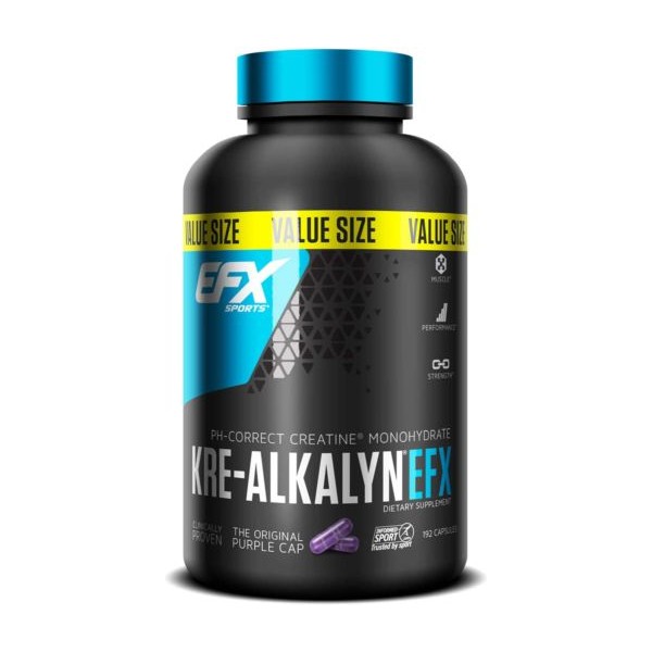 Kre-Alkalyn EFX de All American EFX es un suplemento en cápsulas formulado exclusivamente con creatina Kre-Alkalyn® original, la única del mercado que utiliza una tecnología especial patentada que incrementa la estabilidad de la creatina con el objetivo de mejorar su efectividad.