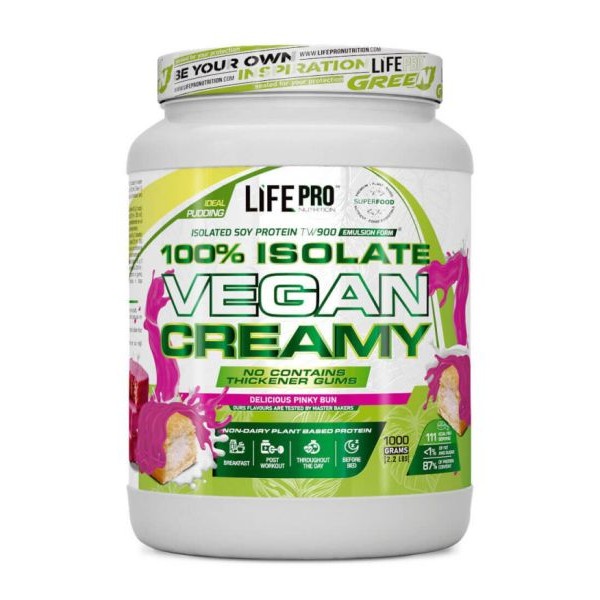 Isolate Vegan Creamy ha sido formulada y diseñado por Life Pro, con el objetivo de ofrecer una proteína de origen vegetal, elaborada únicamente aislado de soja, sin mezcla de otro tipo de proteínas.