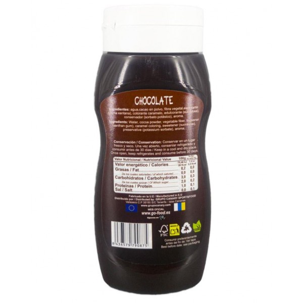 - Delicioso sirope de chocolate con un 0% de azúcares.