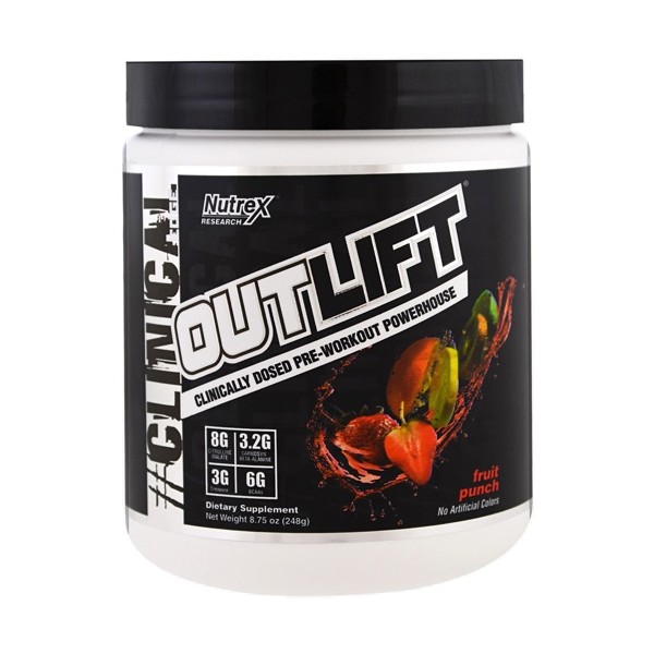 OutLift™ de Nutrex Research es un nuevo y completo pre-entreno todo en uno clínicamente dosificado diseñado específicamente para mejorar la fuerza y el tamaño muscular.