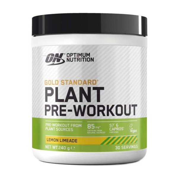 Plant Pre-Workout de Optimum Nutrition es un suplemento en polvo que contiene una fórmula de pre-entrenamiento basada en plantas y que ha diseñada especialmente para deportistas que siguen una dieta vegana o vegetariana.