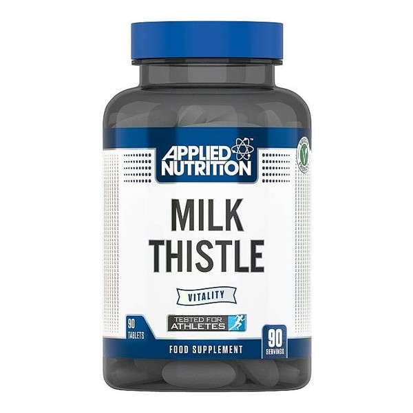 Milk Thistle de Applied Nutrition es un suplemento en tabletas que proporciona 300 mg de extracto estandarizado de fruto de cardo mariano (Silybum marianum (L.) Gaertner) (equivalente a 7.200 mg - 8100 mg de fruto de cardo mariano) de los cuales 174 mg corresponden a silimarina, como silibinina.