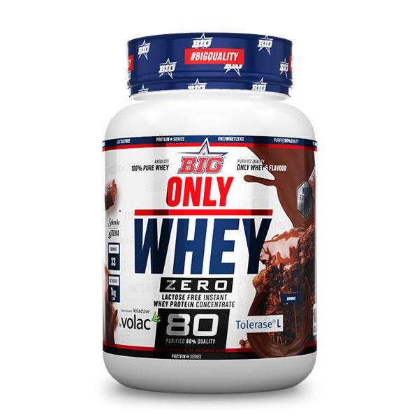 Only Whey™ Zero de la línea Big de Universal McGregror es un suplemento en polvo que contiene el 100% de concentrado de proteína de suero Volactive® Ultrawhey 80 instant, enriquecida con Tolerase L-Lactasa® para mejorar significativamente la digestión de la lactosa contenida en el suero, y doblemente edulcorada con Stevia y Splenda®.