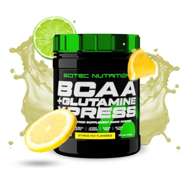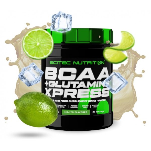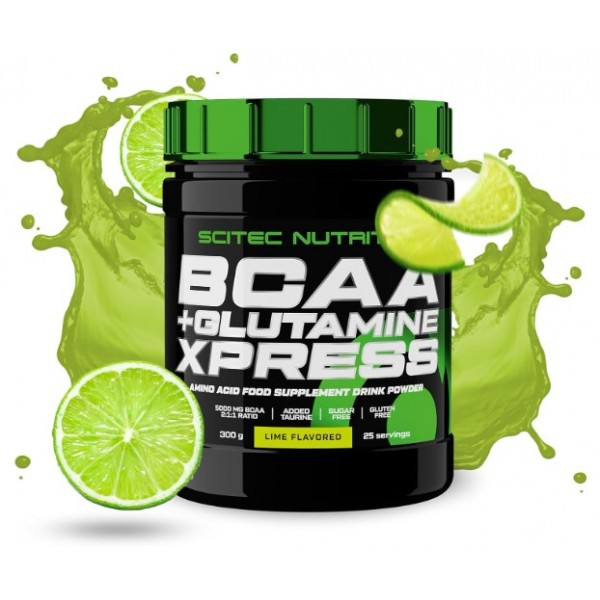 BCAA + Glutamine Xpress de Scitec Nutrition es un suplemento en polvo con un excelente sabor a kiwi, melón o albarico, que te proporciona una mezcla de BCAAs y glutamina en una proporción 1:1 y potenciada con taurina.