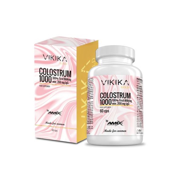 Colostrum 1000 de la nueva línea Vikika Gold de Amix Nutrition es un suplemento en cápsulas elaborado a base de calostro bovino estandarizado para un contenido mínimo de 200 mg de inmunoglobulina G (IgG), una sustancia pre-leche que elaboran la hembras de los mamíferos durante las 24 primera horas de lactancia.