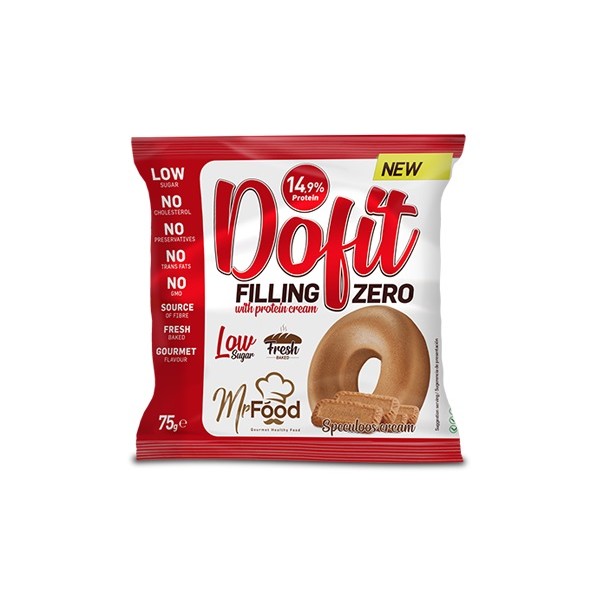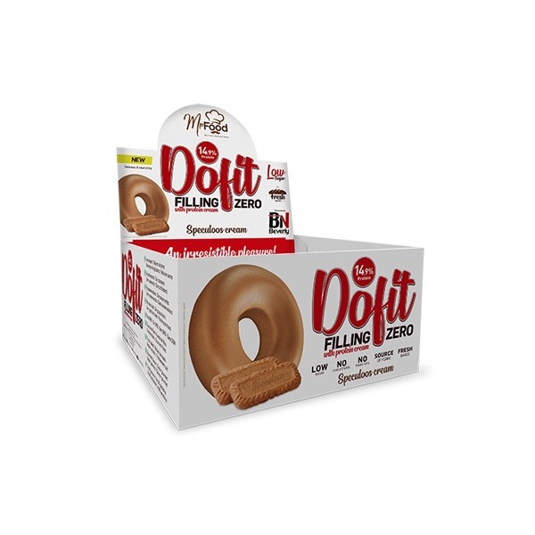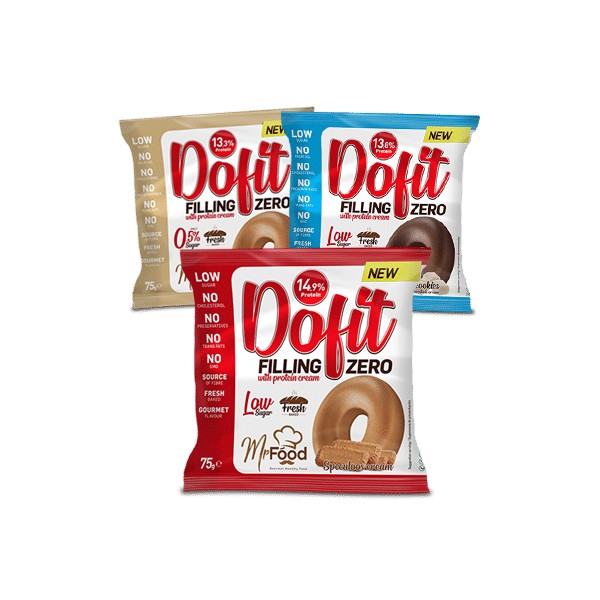 Dofit Filling Zero no sólo te ofrece un aporte nutricional excepcional, sino que también tiene todo el sabor de unas rosquillas con sabor a Black cookies con chocolate blanco, White praline o Crema de speculoos.