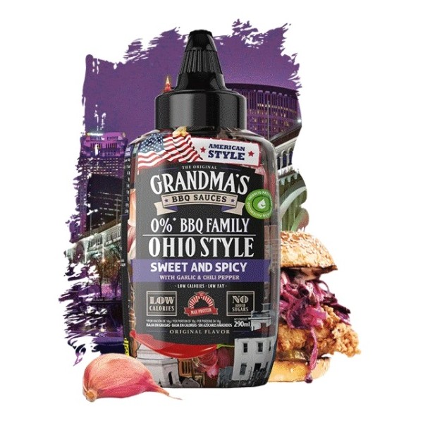 Grandmas BBQ Ohio de Max Protein es una increíble salsa estilo Ohio con ajo y piminento chile de bajo valor energético ideal para acompañar carnes y verduras.