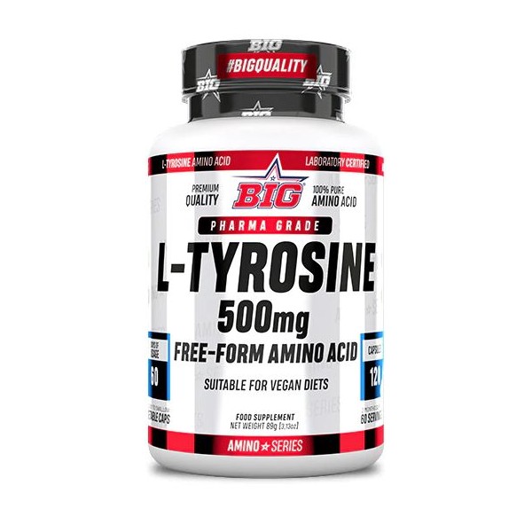L-Tyrosine de Big es un suplemento en cápsulas que proporciona 1.000 mg de L-tirosina por dosis de 2 cápsulas.