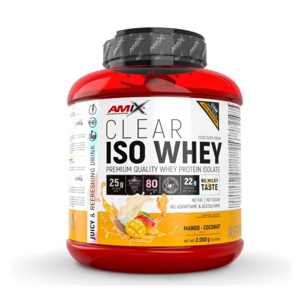 Clear Iso Whey de la marca nº1 en Europa Amix™ Nutrition es un suplemento en polvo que contiene el 100% de aislado de proteína de suero cristalina de la más alta calidad y con un excelente perfil de aminoácidos.