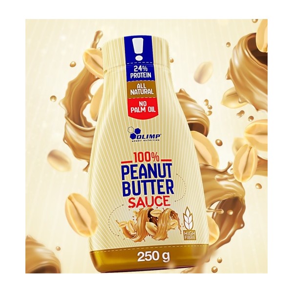 Peanut Butter Sauce de Olimp® Sport Nutrition es una deliciosa mantequilla de cacahuete 100% natural elaborada con el 100% de cacahuetes.