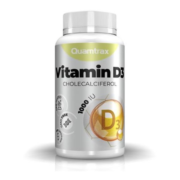 Vitamin D3 de Quamtrax Nutrition es un suplemento en cápsulas que proporciona 25 µg (1000IU) de vitamina D3 como colecalciferol con gran poder de absorción, una vitamina esencial liposoluble que a menudo se la conoce como “la vitamina del sol“.