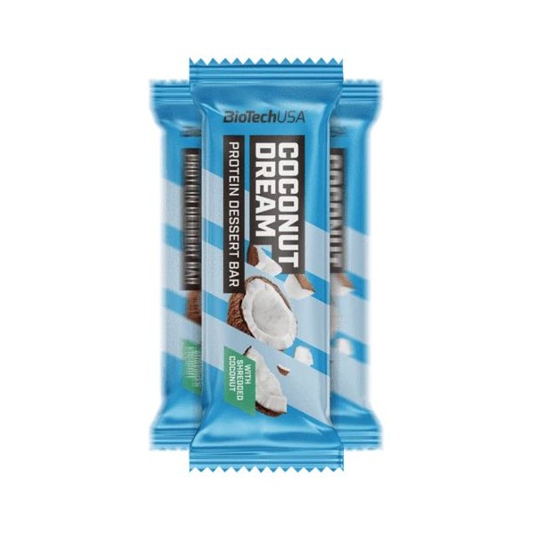 En la barrita Coconut Dream Protein Dessert Bar, la experiencia del postre la proporciona no solo el irresistiblemente delicioso sabor a coco, sino también la textura especial de esta barra de proteína, ya debajo de la ligera capa de revestimiento hay una suave barra con delicioso coco rallado. La barra Coconut Dream Protein Dessert Bar también es una excelente opción para un antojo, así que no tienes que aguantar si anhelas los dulces.