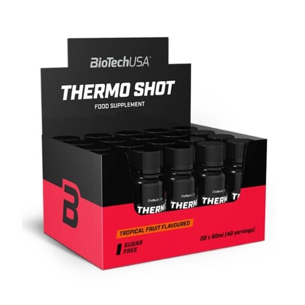 Thermo Shot de BioTech USA es una potente fórmula quemagrasas y termogénica en formato líquido, extremadamente potente que ha diseñado con 12 ingredientes activos para que alcances el cuerpo definido que siempre has deseado.