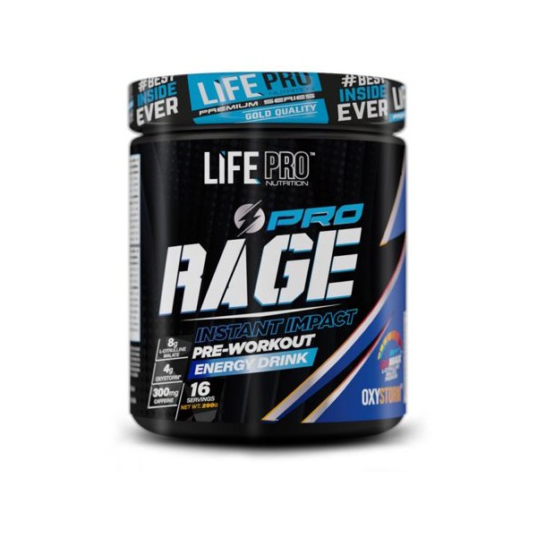 Rage Pro Pre-Work de LifePro Nutrition es un suplemento en polvo diseñado para tomar antes del entrenamiento, elaborado con un conjunto de ingredientes seleccionados, con el objetivo de proporcionar una excelente fuente de energía y lograr la mejora más óptima durante la realización de entrenamientos especialmente de fuerza como el crossfit.