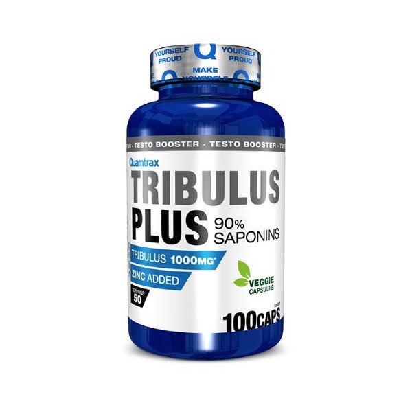 Tribulus Plus de Quamtrax Nutrition es un suplemento en cápsulas que proporciona 500 mg de extracto de tribulus terrestris (90% de saponinas) potenciado con zinc por dosis de 1 cápsula.