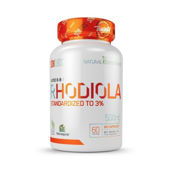 Rhodiola de StarLabs es un suplemento en cápsulas que te proporciona 500 mg de extracto de rhodiola rosea estandarizado para un 3% de rosavins, una planta que ayuda a fortalecer el sistema nervioso, a la vez que mejora nuestra inmunidad natural.