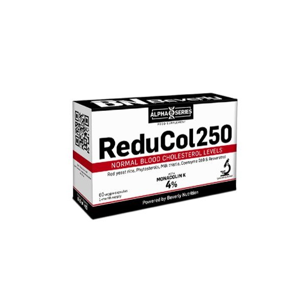 ReduCol 250 de Beverly Nutrition es un suplemento en cápsulas que contiene una fórmula innovadora a base de levadura roja de arroz, fitoesteroles, extracto de cardo mariano, coenzima Q10 y resveratrol que ha sido desarrollada para mantener unos niveles óptimos de colesterol en sangre.