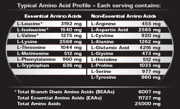 - Proporciona 26 gramos de proteína y más de 6 gramos de BCAAs por servicio.
