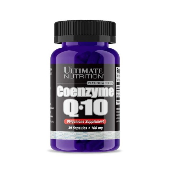 Coenzyme Q10 de Ultimate Nutrition es un suplemento en cápsulas que 100 mg de coenzima Q10 (ubiquinona-50) por dosis de 1 cápsula.