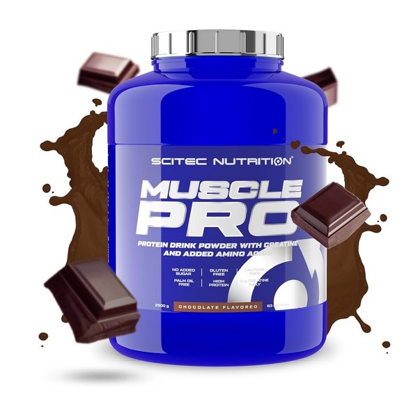 Muscle Pro de Scitec Nutrition es un suplemento en polvo que tiene una proteína de liberación secuencial que combina la proteína de soja, el concentrado de proteína de suero y la caseína micelar, reforzado con 3,42 g de monohidrato de creatina y 1,1 g de aminoácidos adicionales por dosis.