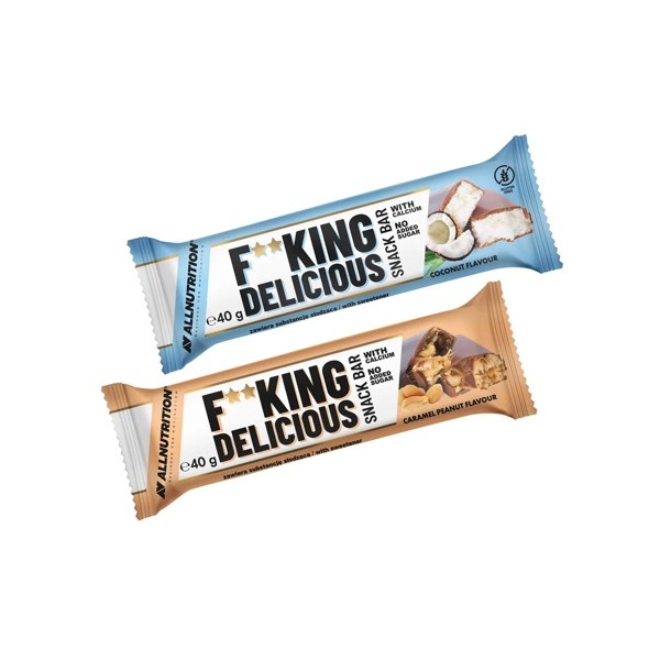 Fitking Delicious Snack Bar de AllNutrition son unas deliciosas barritas de chocolate con leche sin azúcares añadidos para que tomes un nutritivo y saludable snack siempre que lo necesites.