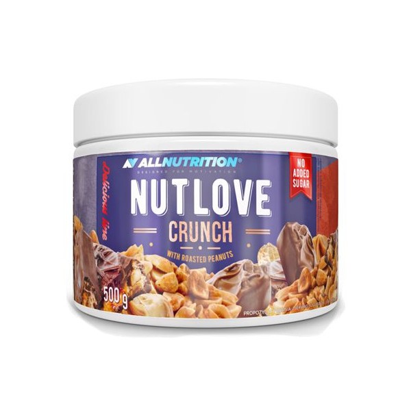La crema Nutlove Crunch With Roasted Peanuts, al igual que otros productos AllNutrition, se elabora siguiendo la idea de una “comida saludable”. Esto significa una producción con métodos completamente naturales, triturando cacahuetes tostados (hasta un 37%), agregando leche en polvo desnatada, cacao y sin azúcar añadido.