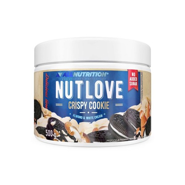 La crema Nutlove Crispy Cookie con Almond, al igual que otros productos AllNutrition, se elabora siguiendo la idea de una “comida saludable”. Esto significa una producción con métodos completamente naturales, triturando almendras y agregando trozos de auténticas galletas de cacao, sin azúcar añadido.