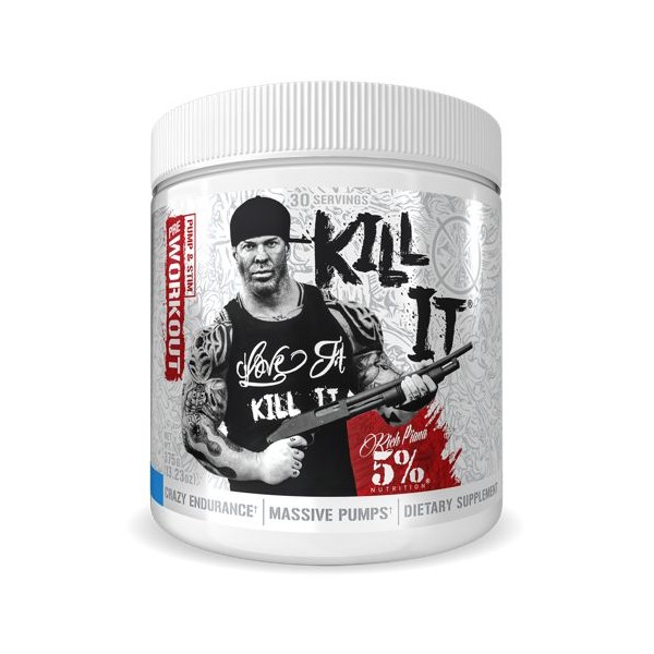 Kill It ha sido diseñado para tener todas sus bases cubiertas; bombeo muscular, fuerza, resistencia, concentración mental y energía de larga duración. No gastes tu dinero en suplementos cargados con ingredientes con nombres largos de fantasía que tienen ningún efecto en tí. Rich Piana's 5% Nutrition sabe que es lo que realmente funciona y te lo proporcionan en las dosis adecuadas de cada servicio de Kill It.