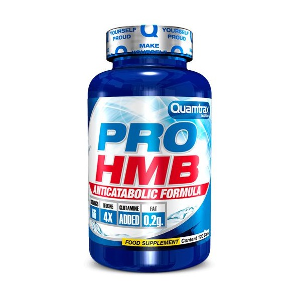 Pro HMB de Quamtrax Nutrition es un suplemento en cápsulas que proporciona 300 mg de Hidroximetilbutirato (HMB) en combinación con 150 mg de L-leucina y 300 mg de L-glutamina por cápsula.