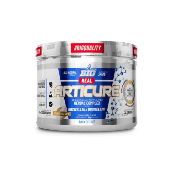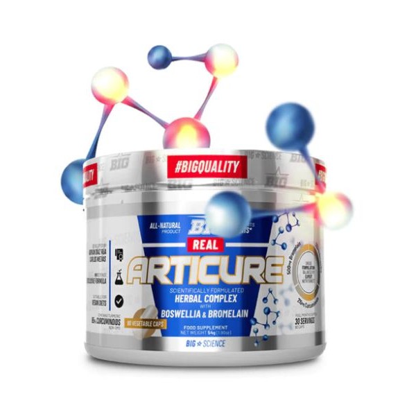 Real Articure de la gama BIGscience es un suplemento en cápsulas que contiene una serie de extractos vegetales, entre los que destacan la bromelaína o los extractos de boswellia y cúrcuma, cuya combinación ofrece efectos beneficiosos para la prevención y recuperación de dolores articulares, gracias a su efecto antiinflamatorio.