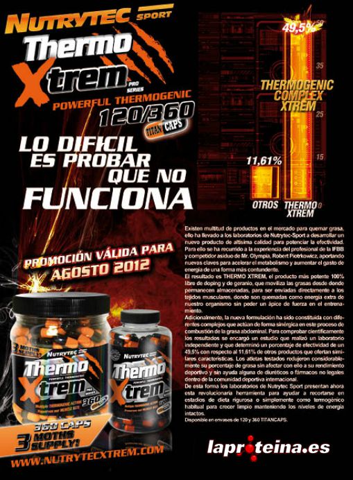 Thermo Xtrem de Nutrytec Xtrem es una potente fórmula termogénica de acción múltiple que contiene los ingredientes termogénicos naturales más activos para conseguir una importante pérdida de grasa sin poner en peligro nuestro tamaño muscular.