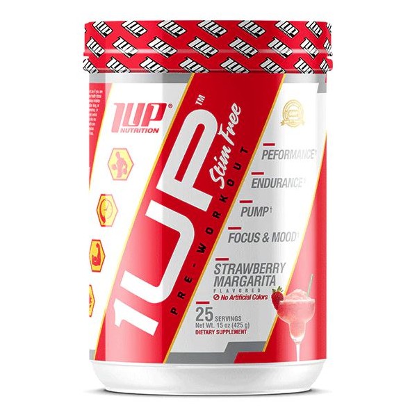 1UP Stim Free Pre-Workout de 1UP Nutrition es un suplemento en polvo que contiene la versión sin estimulantes del pre-entrenamiento de enorme en EEUU diseñado para mejorar la concentración mental, el bombeo muscular y la resistencia con el fin de mejorar tu rendimiento durante el entrenamiento.