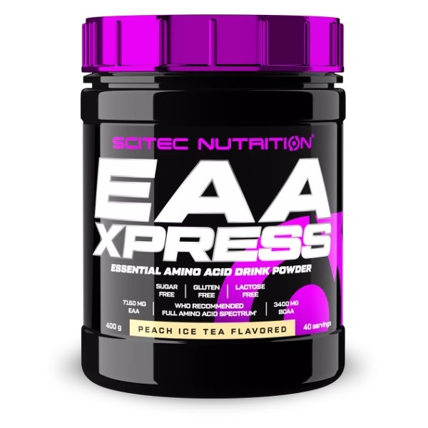 EAA Xpress de Scitec Nutrition es un suplemento en polvo, con un refrescante y delicioso sabor que te proporciona 7160 mg de una combinación estudiada de los 9 aminoácidos esenciales, de los cuales 3400 mg son de BCAAs por dosis de 10 gramos.