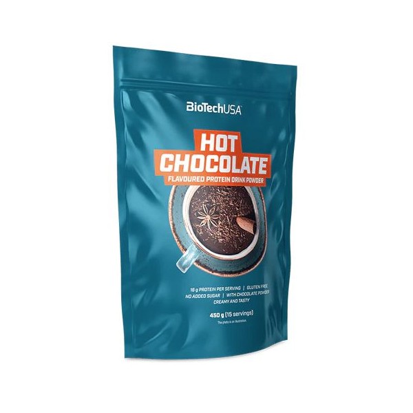 Hot Chocolate de BioTech USA es un suplemento en polvo para preparar una deliciosa bebida alta en proteínas con sabor a chocolate caliente, elaborada con proteína de leche y proteína de suero lácteo.