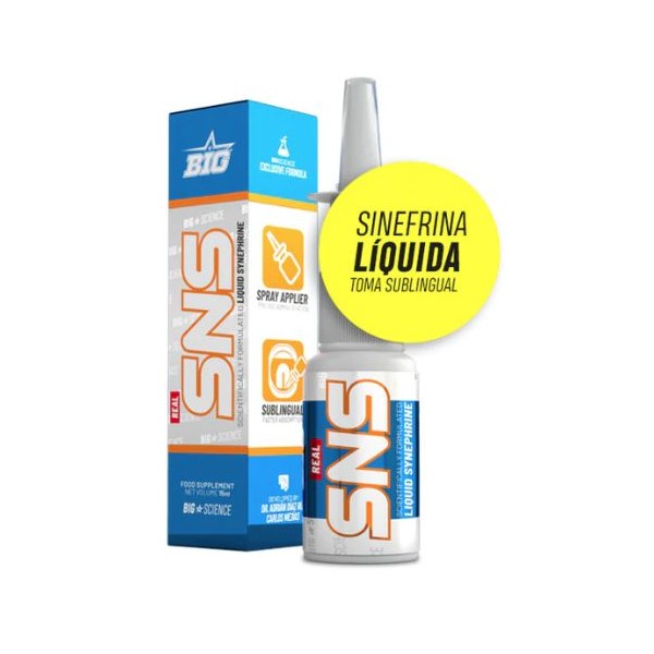Real SNS de la gama BIGscience es una formulación única que contiene sinefrina de origen 100% natural en un novedoso formato líquido de administración sublingual único en el mercado actual.