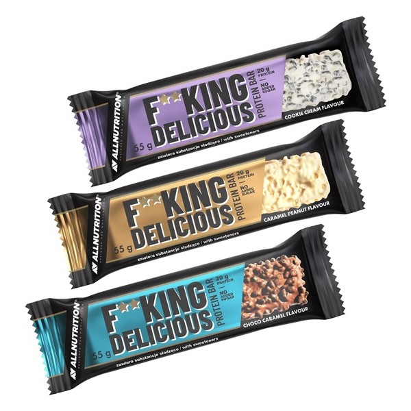 Fitking Delicious Protein Bar de AllNutrition son unas deliciosas barritas con 20 gramos de proteína sin azúcares añadidos disponibles en 3 deliciosos sabores para que tomes un nutritivo y saludable snack siempre que lo necesites.
