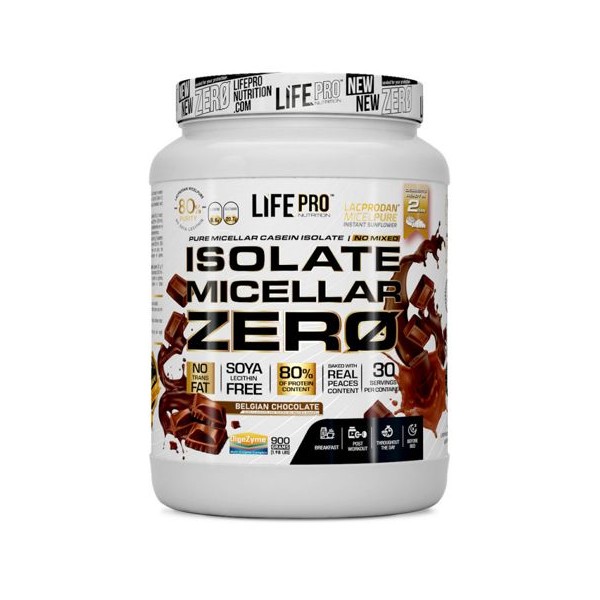 Isolate Micellar Zero de LifePro Nutrition es un suplemento en polvo formulado con aislado de caseína micelar (Lacprodan Micelpure Instant), sin ningún tipo de mezcla de otra fuente proteica.