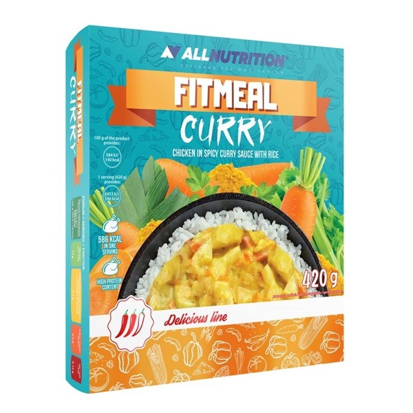 FitMeal Curry de AllNutrition es un delicioso plato de pollo y arroz con salsa curry y verduras que satisfará los paladares más exigentes.