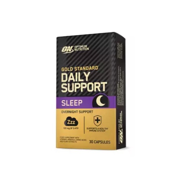 Gold Standard Daily Support Sleep de Optimum Nutrition es un suplemento en cápsulas para tomar por la noche antes de dormir que contiene una fórmula diseñada para mejorar el sistema inmunológico y la función muscular mientras dormimos y al mismo tiempo conseguir tengas un descanso nocturno absolutamente reparador.