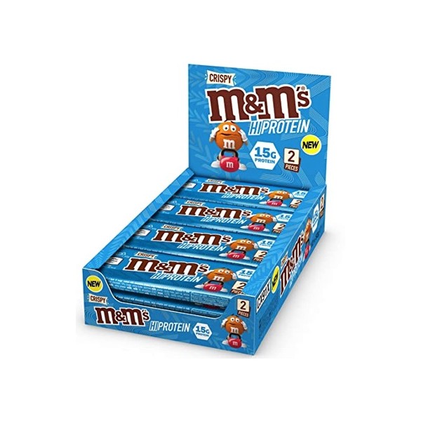 Las barritas M&M´s Hi Protein Crispy Bar de Snickers and Mars Protein Bars son una versión fitness de los deliciosos M&M´s en forma de 2 deliciosas barritas con una cubierta de chocolate con leche, una fina capa de caramelo y el interior de chocolate con avellanas con sorprendentes M&M´s y crujientes de soja para proporcionarte 15 gramos de proteína por paquete.